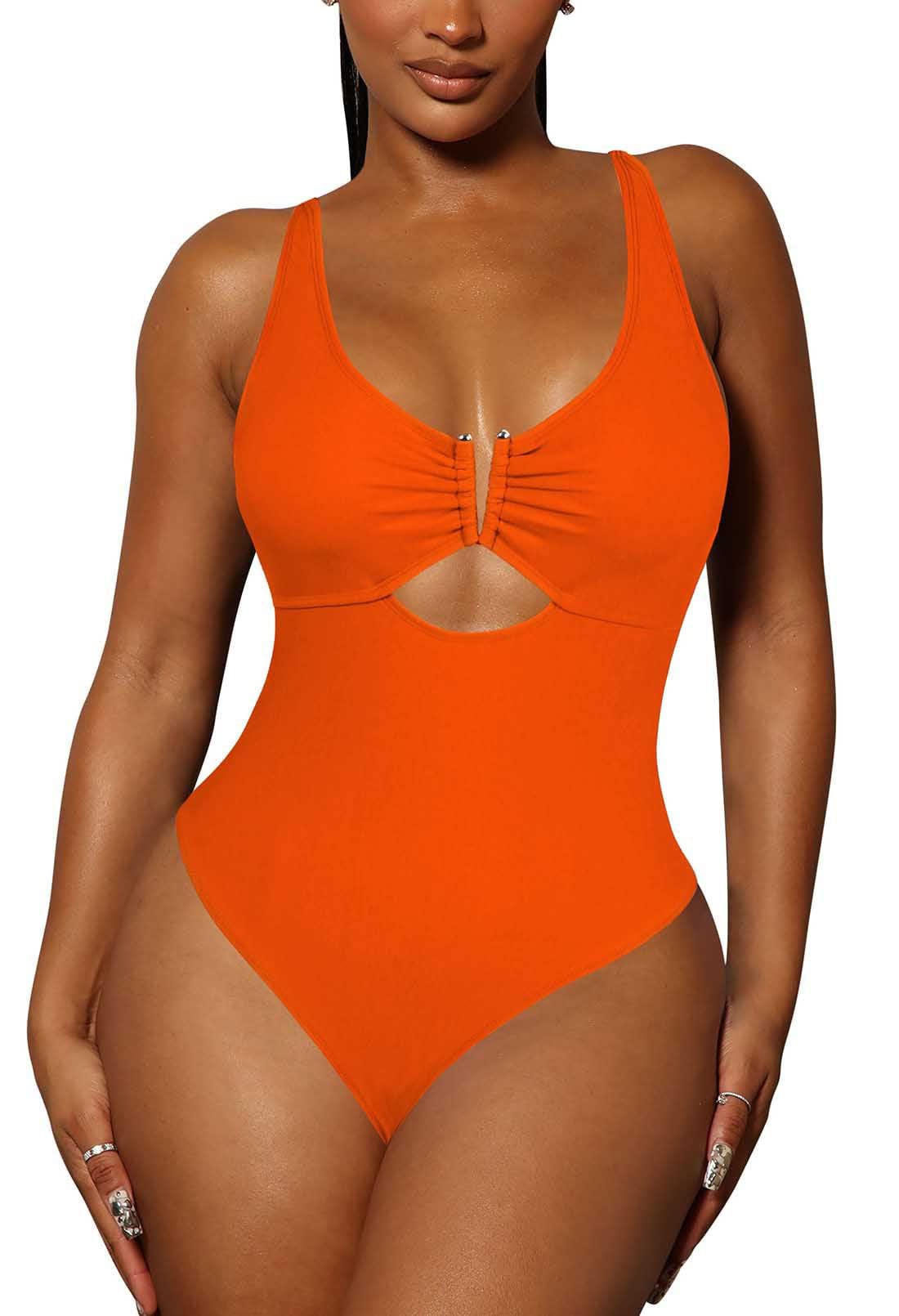 Viottiset Women's One Piece Swimsuit Tummy Control Cheeky High Cut Out Bathing Suit Backless Monokini Neon Orange S