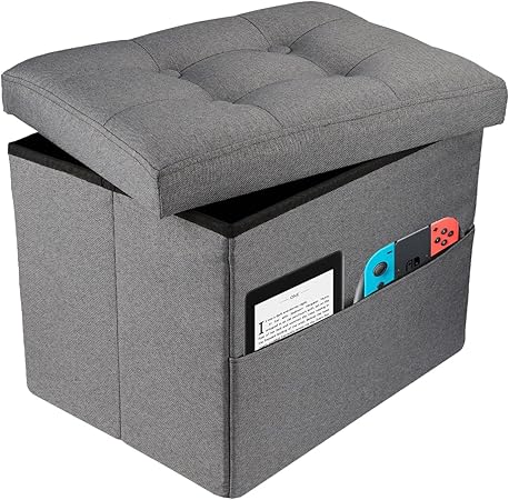 Ottoman Storage Ottoman Collapsible Ottoman with Storage Foot Rest Small Ottoman with Side Pocket Foot Stools for Living Room Grey L17W13H13inches