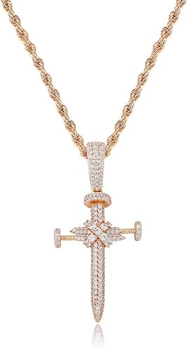 JINAO Hip Hop Iced Out CZ Nail Cross Necklace 18K Gold Plated Simulated Diamond Pendant for Men