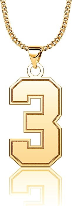 Stainless Steel 18K Jersey Number Necklace Sports Soccer Football Basketball Baseball for Boys Men Girls