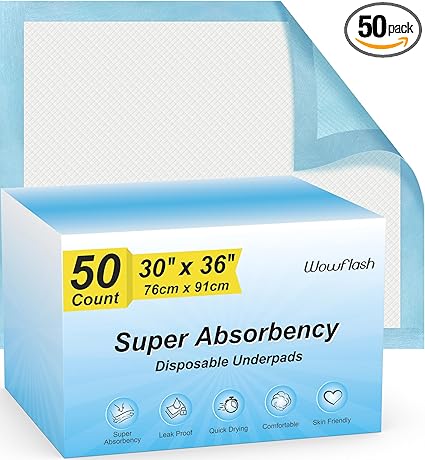 50 Count 30‰۝ x 36‰۝ Super Absorbency Disposable Underpads, Leakproof Quick Drying, Baby Puppy & Adults Bed Pads Disposable Adults, Dog Pee Pads Extra Large, XXL Incontinence Pads