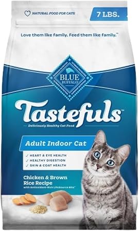 Blue Buffalo Tastefuls Natural Dry Food for Adult Indoor Cats, Chicken & Brown Rice Recipe, 7-lb. Bag