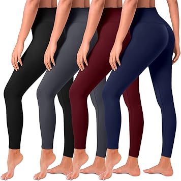 4 Pack Leggings for Women Butt Lift High Waisted Tummy Control Slimming Black No See-Thru Yoga Pants Workout Running