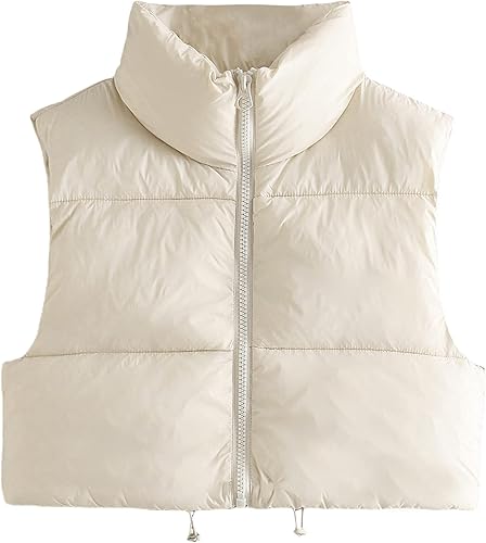 Athlisan Womens Cropped Puffer Vest Zip Up Stand Collar Sleeveless Padded Crop Vests