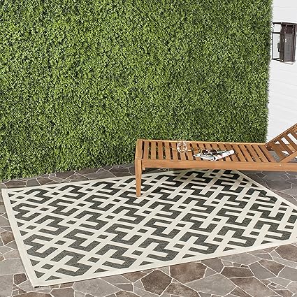 SAFAVIEH Courtyard Collection 2'7" x 5' Black/Beige CY6915 Indoor/ Outdoor Waterproof Easy-Cleaning Patio Backyard Mudroom Area-Rug