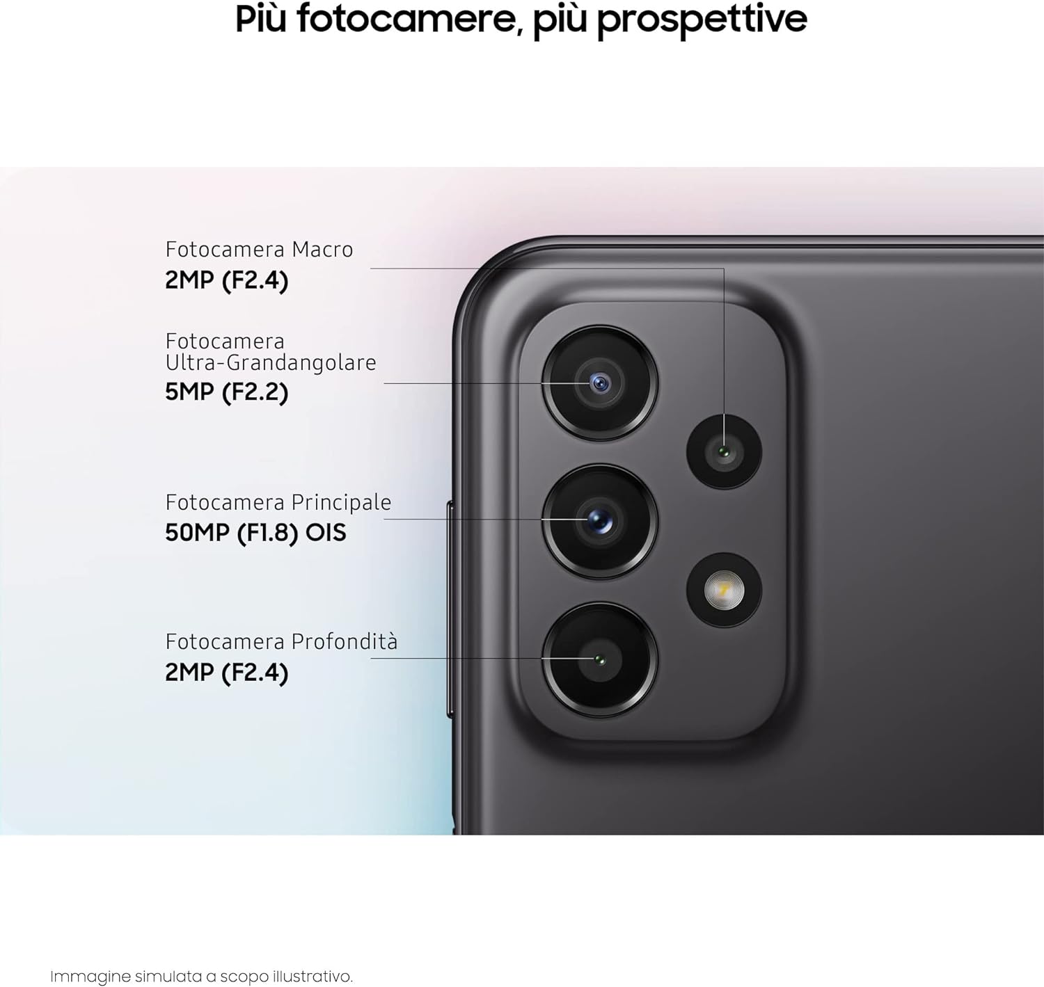 The multi-lens camera on the Galaxy A23 5G takes photos to the next level. Get crisper, clearer shots with the 50MP OIS Camera, expand your viewing angle with the Ultra Wide Camera, customize focus with the Depth Camera and get closer to details with the Macro Camera.