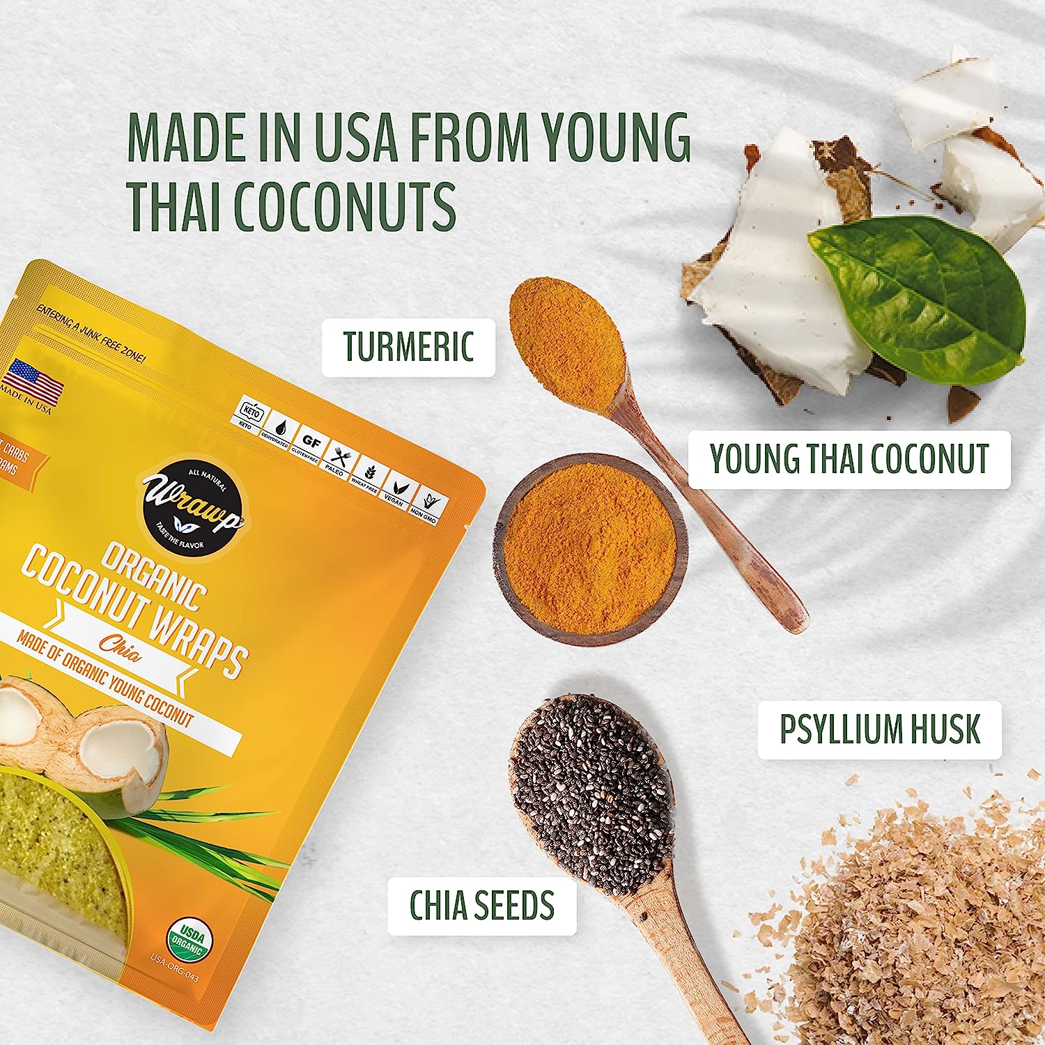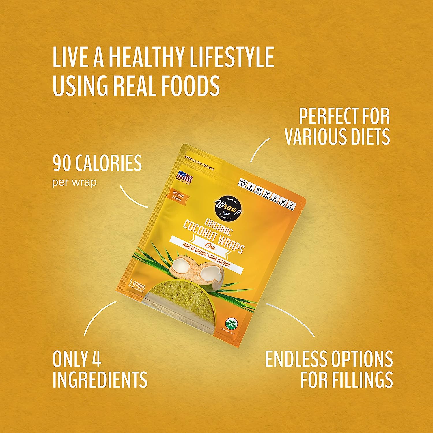 • DIET COMPATIBILITY – This Certified Organic, All-Natural, Raw, Vegan, Plant based, Paleo, Keto friendly, NON-GMO and NO Salt Added wrap is yeast free. Coconut Wraps contain NO Gluten, Grain, Corn, Soy, Dairy or Egg and are great for vegans, paleo, and Keto diets.