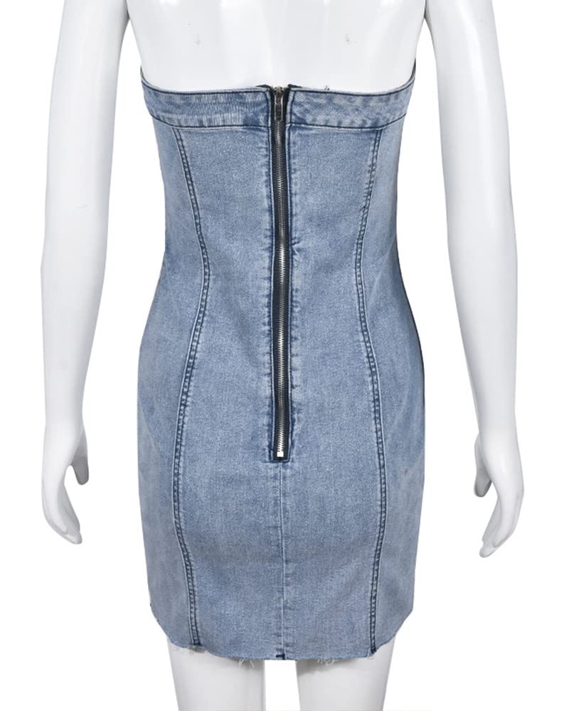 • Features: Women's strapless mini denim dress, sexy jean bodycon dress, corset tube denim top dress, button down close or zipper close, slim fit, can be worn as jean corset tube tops and mini body jean dresses.