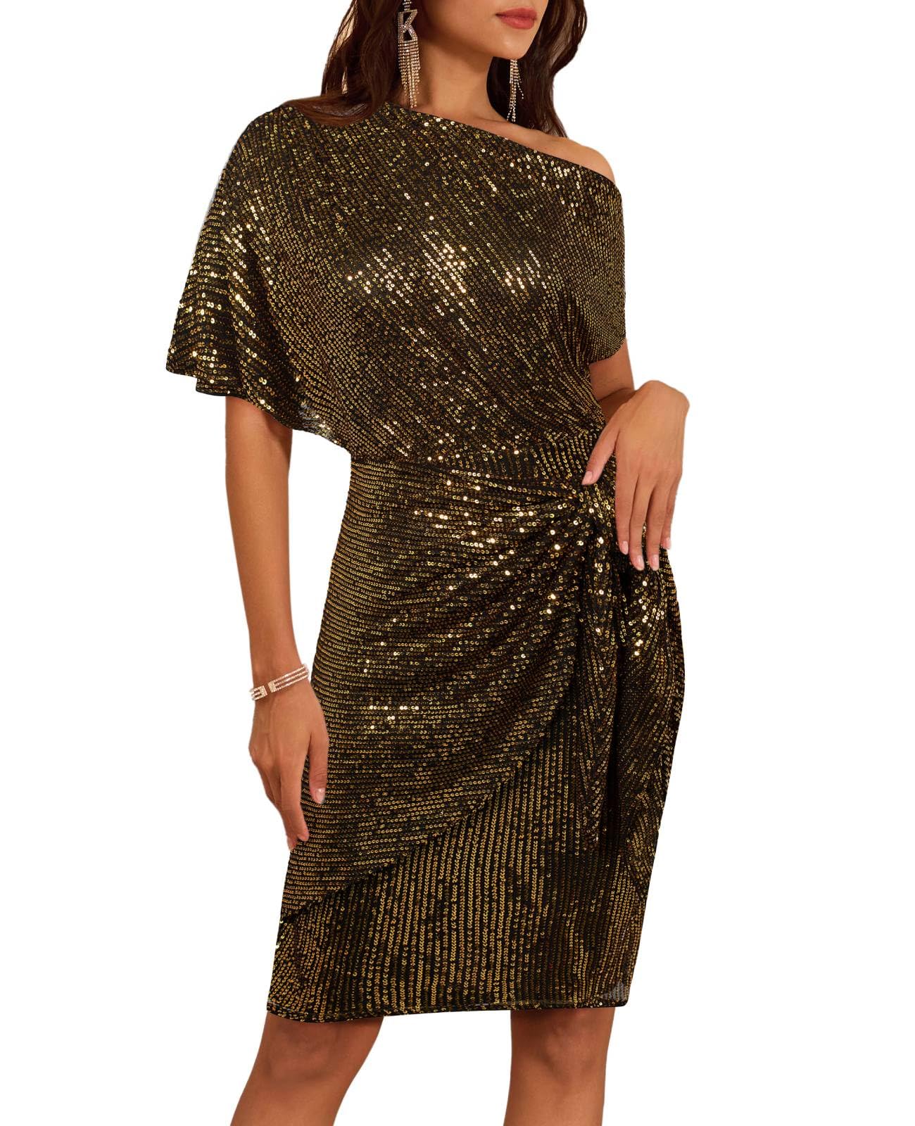 GRACE KARIN Cocktail Dresses for Evening Party One Shoulder Sequin Dresses Black Gold XL