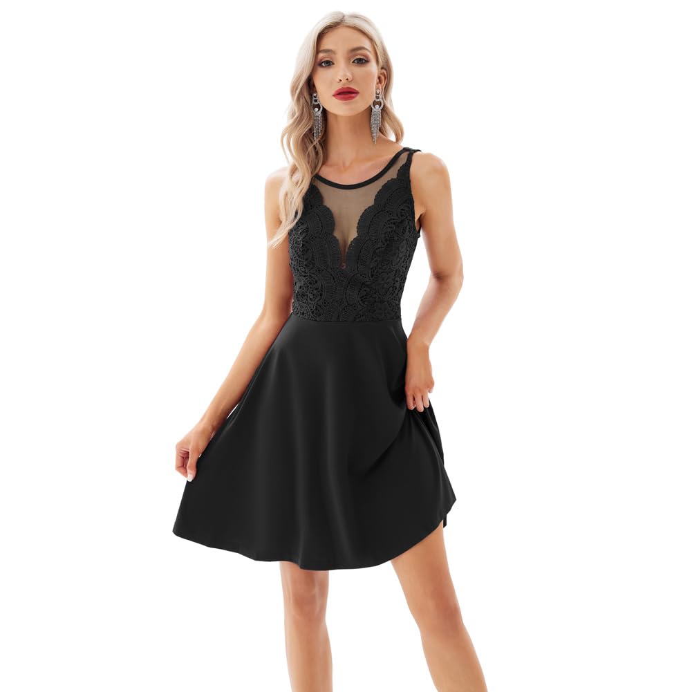 GRACE KARIN Women Lace Patchwork See Through Front A-Line Flare Party Dress M Black