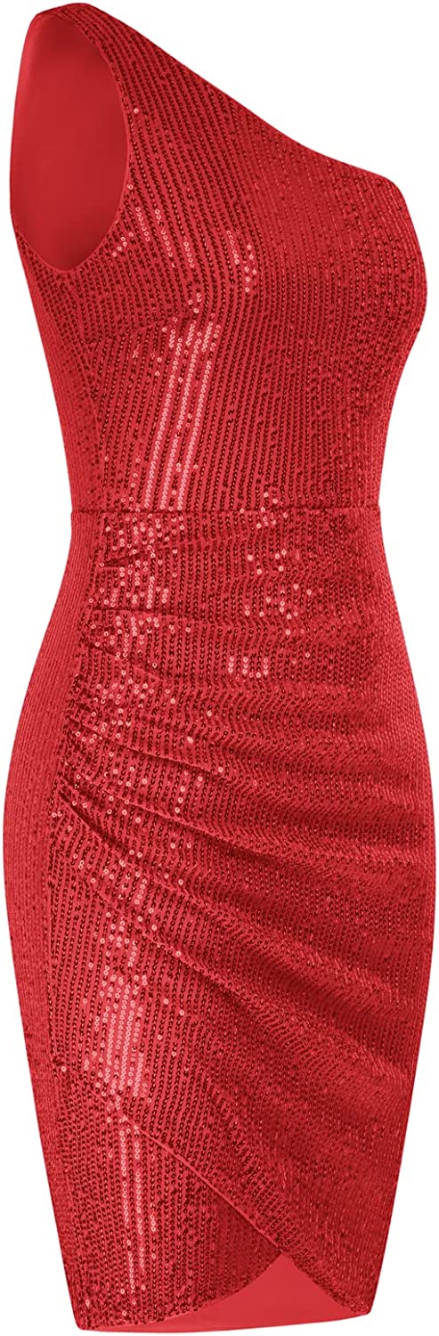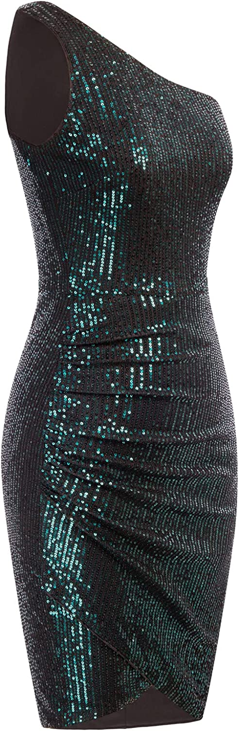 GRACE KARIN Womens Sequin Dress Sparkly Glitter One Shoulder Party Club Dress Wrap Hem Ruched Bodycon Dresses