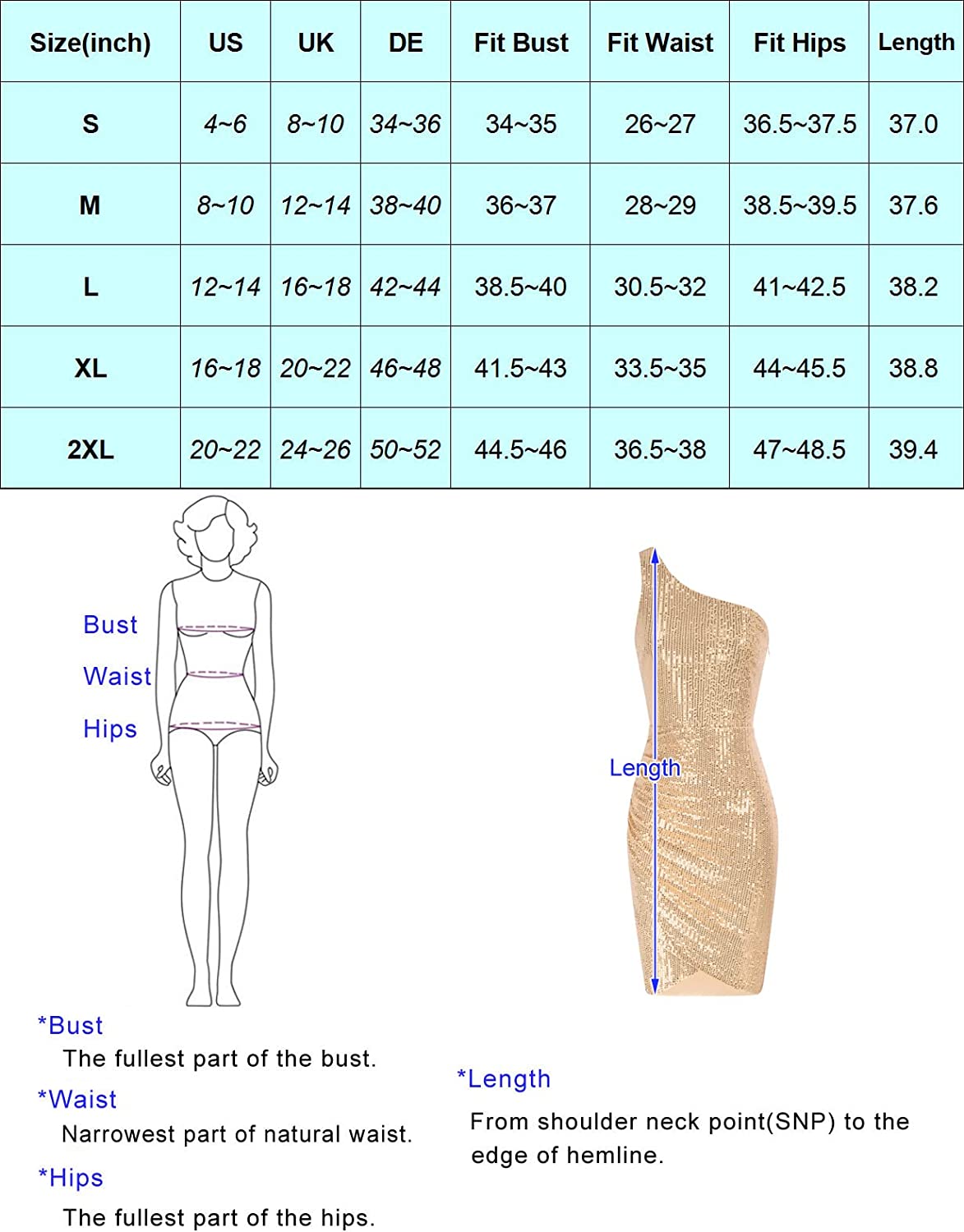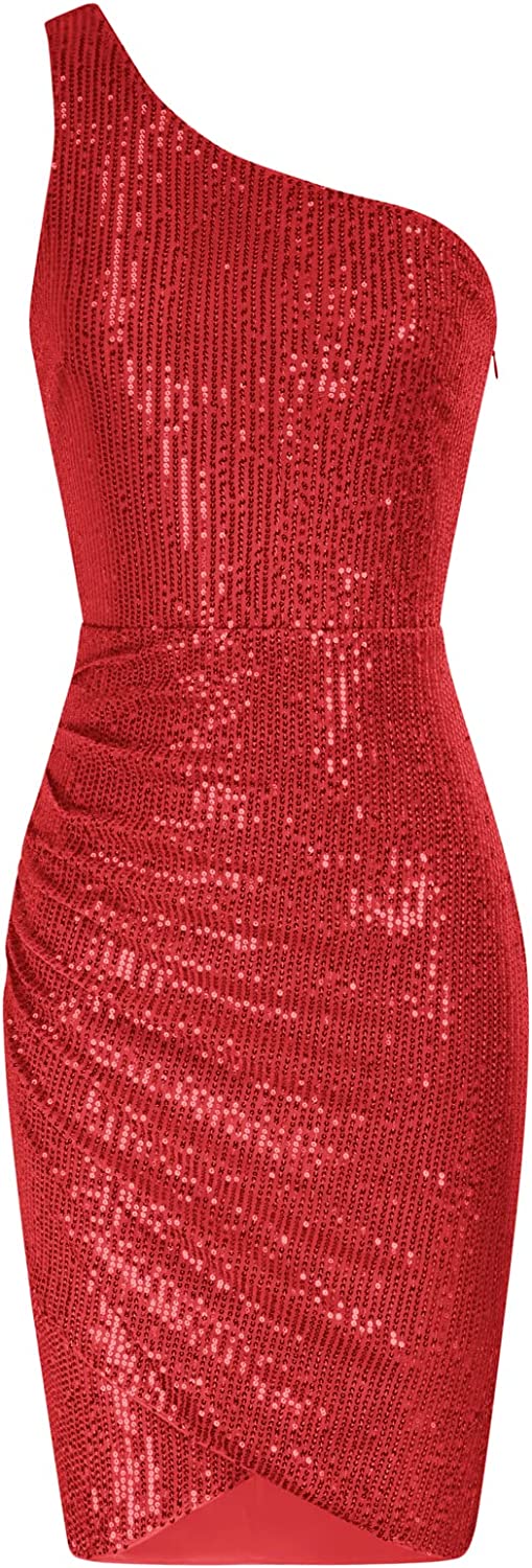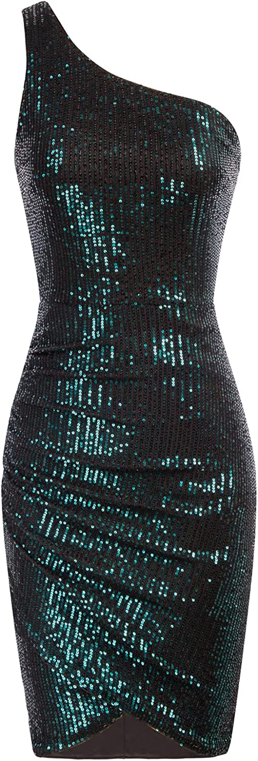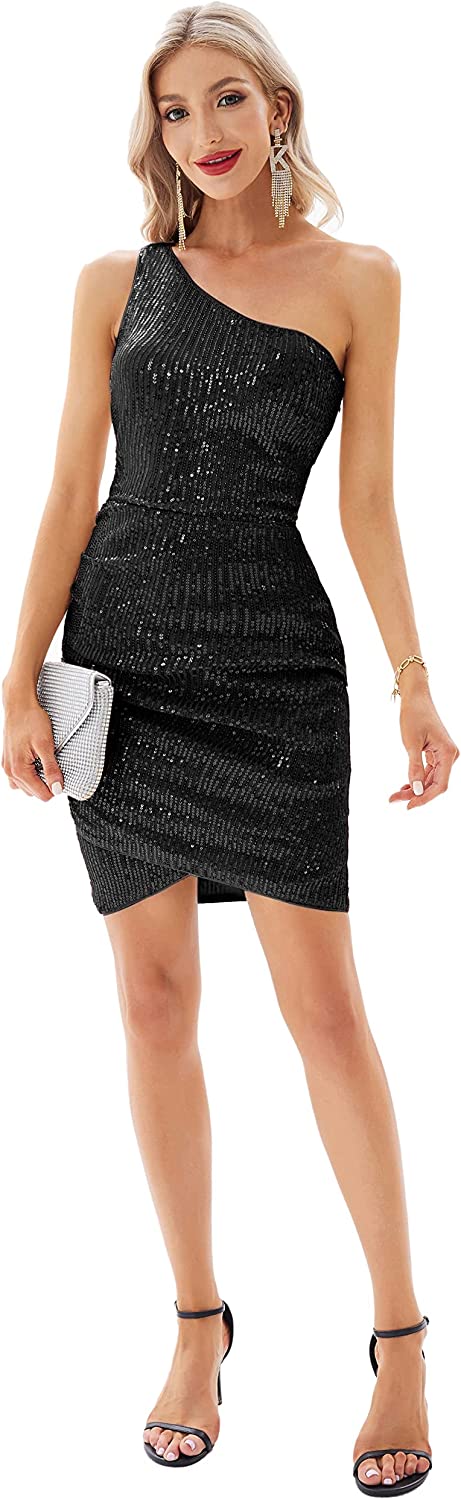 • 【Fashion Style】Sequin Dress for Women, the one shoulder design makes you more sexy and attractive, sparkly cocktail dress makes you stand out from the crowd! The wrap hem make this mini bodycon dress more gorgeous. The stretchy fabric makes you super comfortable when wearing.