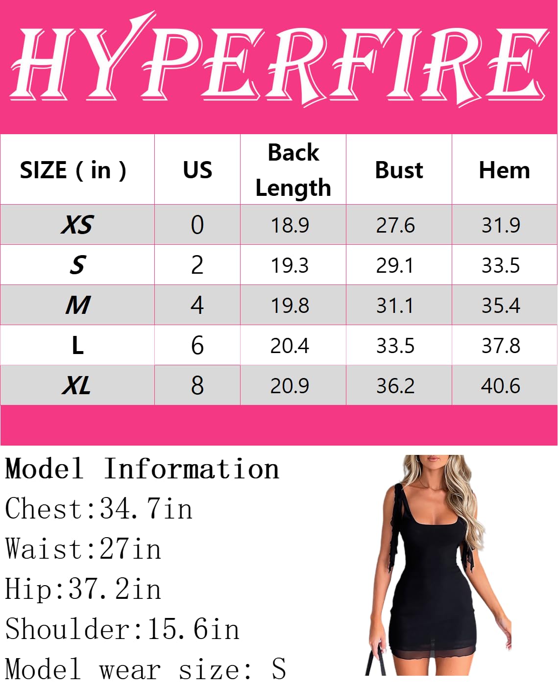HYPERFIRE Women's Sleeveless Square Neck Mesh Mini Dress Low Back Sexy Bodycon Dresses Red Small