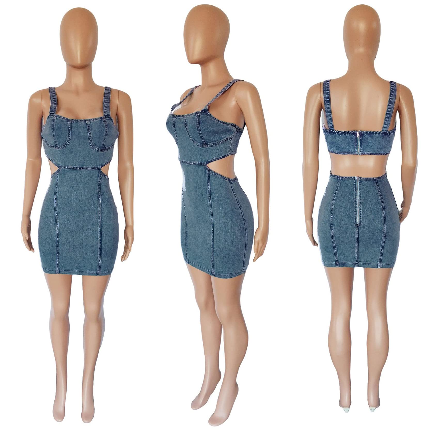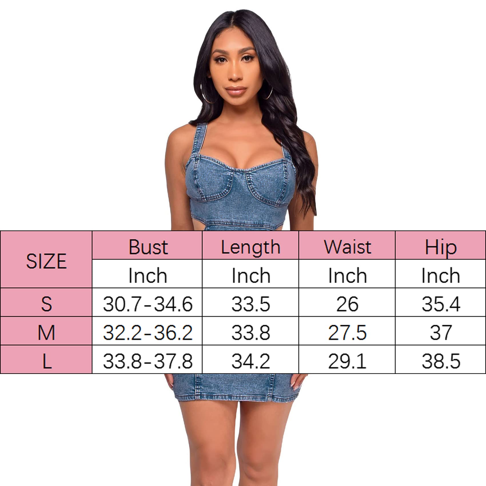 JWJP&CCYIQI Sexy Denim Bodycon Dress One Piece Cut Out Sleeveless Jean Mini Dresses
