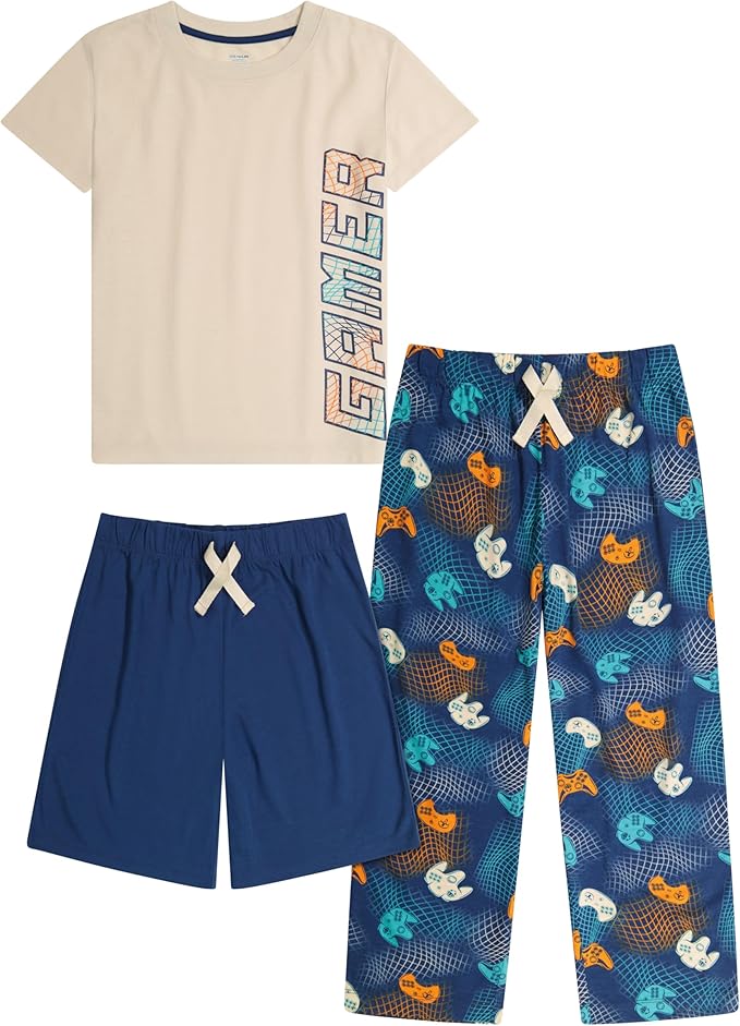 Boys Pajamas Set, 3-Piece Boys_Ü_ Sleepwear Pjs, Loose Fit, Soft, Breathable, Teens and Kids - Size 7-8, 10-12, 14-16