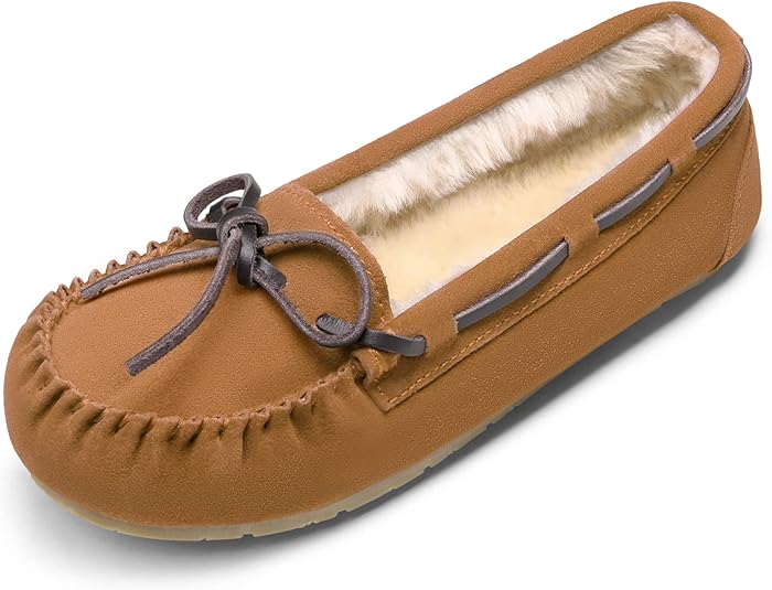 DREAM PAIRS Women's Faux Fur Cozy House Slippers Suede Leather Moccasin Shoes for Indoor and Outdoor Wear
