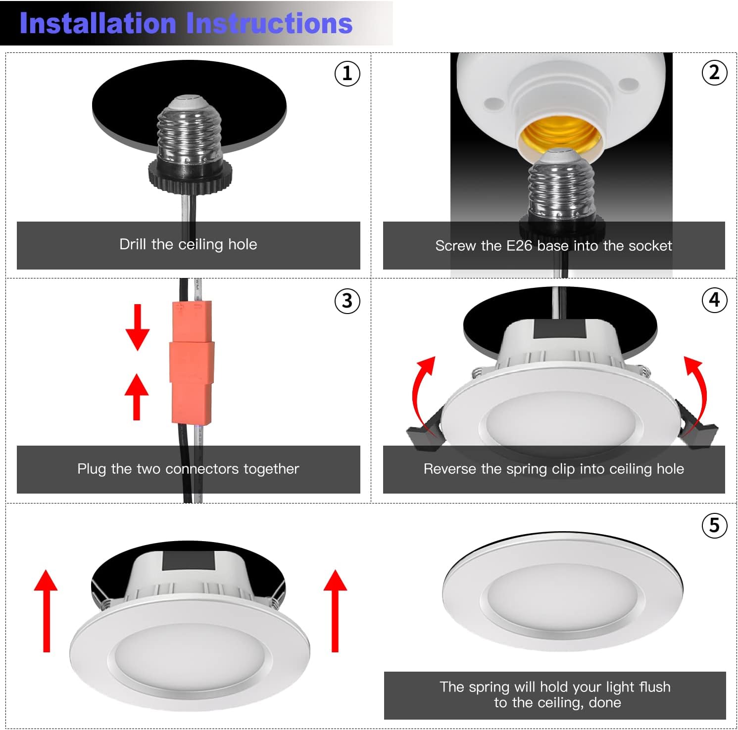 • EASY INSTALLATION: MagicLight Smart LED Recessed Ceiling Lamp comes with a USA standard E26 screw-in socket, Use spring clip to fix it on the ceiling hole. Download free app “Hao Deng” from Apple Store or Google Play Store, add the lights to your app and enjoy your smart light experience.