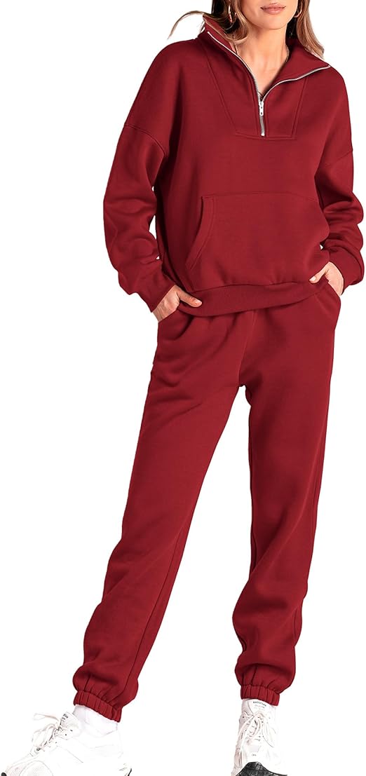 BTFBM Women 2 Piece Tracksuits Fall Winter 1/4 Zip Sweatshirt Jogger Pants Matching Lounge Sets Thick Sweatsuits Pockets