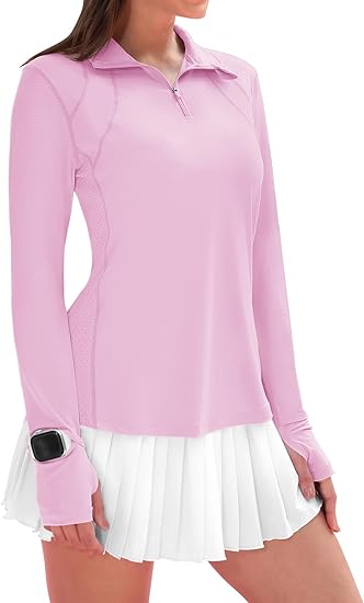 IECCP Womens Long Sleeve Shirts Sun Protection Quarter Zip Pullover Summer Quick Dry Athletic Hiking Running Workout Tops