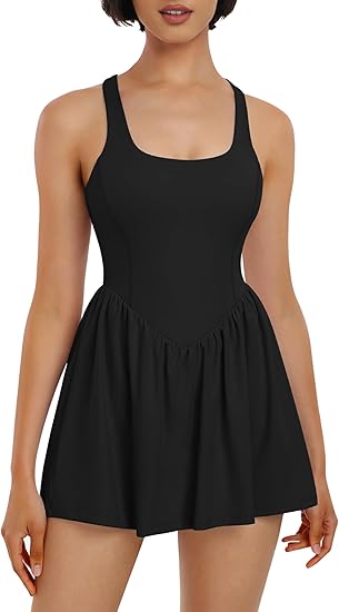 Lingswallow Tennis Dresses for Women with Built in Shorts and Bra Pockets Workout Dress Golf Athletic Dress for Women