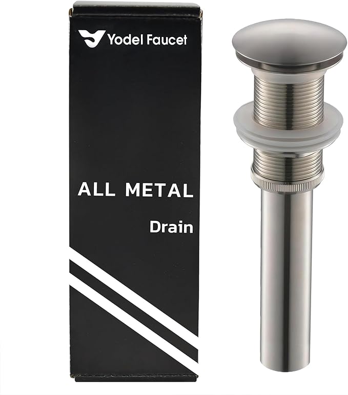 Vessel Sink Drain Without Overflow - Bathroom Sink Drain Stopper - Pop Up Drain All Metal - Big Cap Fit for Vessel or Undermount Sink, Brushed Nickel, YDPOP-1