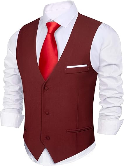 Barry.Wang Mens Formal Suit Vest Slim Fit V-neck 2 Pockets Wedding Party Dress Waistcoat