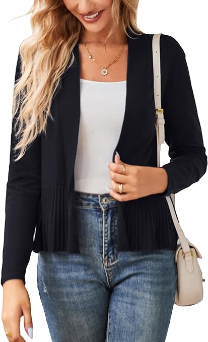 GRACE KARIN Women's Casual Draped Open Front Cropped Cardigan Long Sleeve Sweater Peplum Knit Outwear