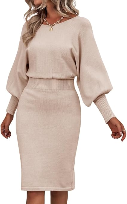 Saodimallsu Sweater Dress for Women Oversized Batwing Sleeve Crew Neck Sexy Ribbed Knit 2023 Fashion Fall Winter Dresses