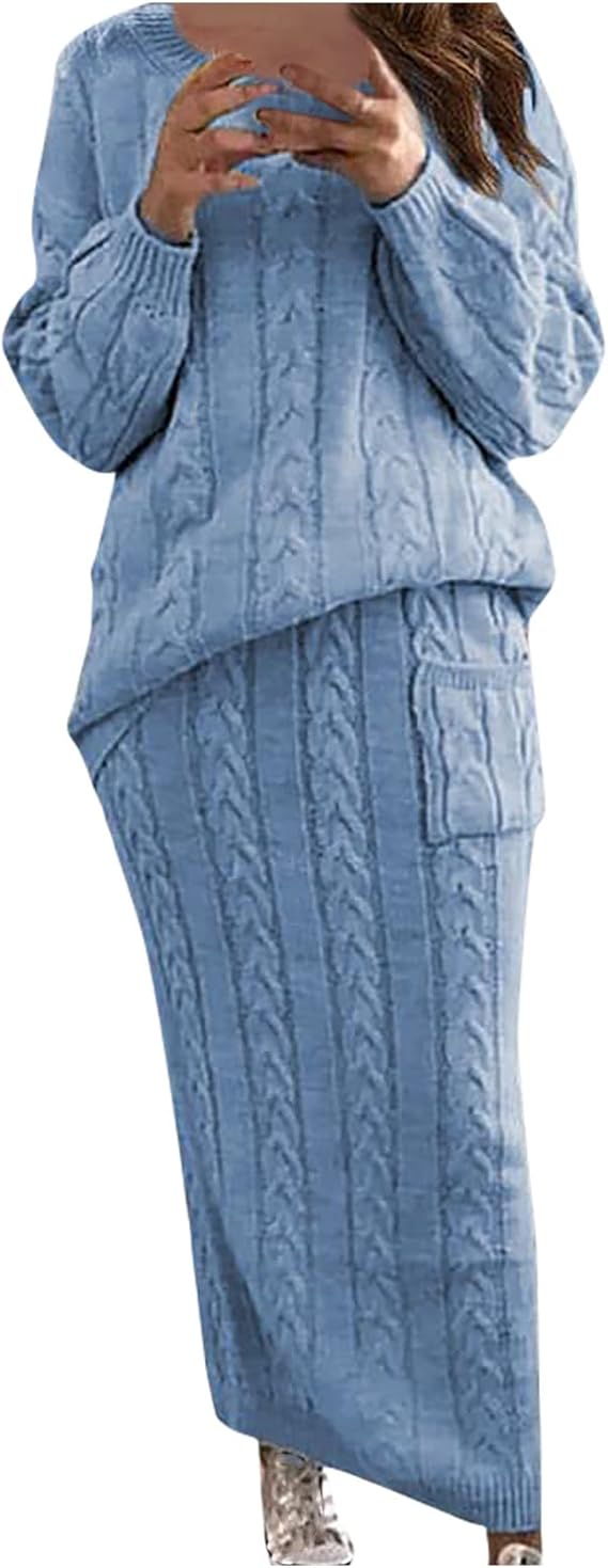 Skirt Sets Women 2 Piece Outfits Winter Chunky Cable Knit Long Sleeve Pullover Sweater and Bodycon Maxi Skirts Set