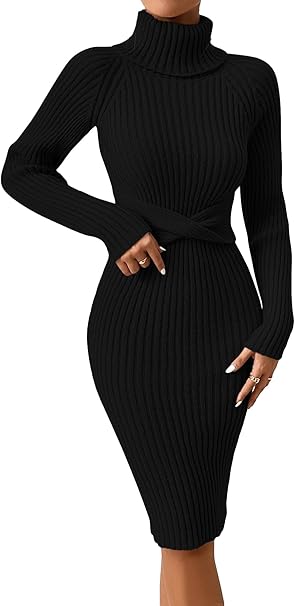 Verdusa Women's Turtleneck Long Sleeve Twist Front Knit Bodycon Sweater Dress