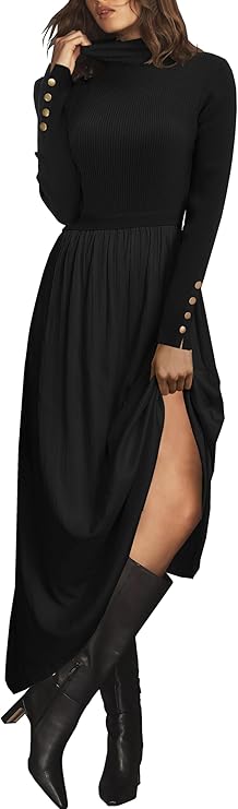 Womes Mock Turtleneck Long Sleeve Ribbed Knit Pullover Tops Fashion Long Maxi Dress