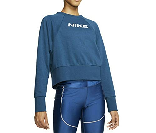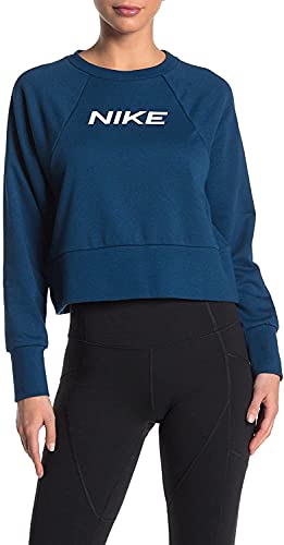 Nike Women's Get Fit Fleece Training Crop Crew Neck Sweatshirt DB4624-432 (X-Small) Blue
