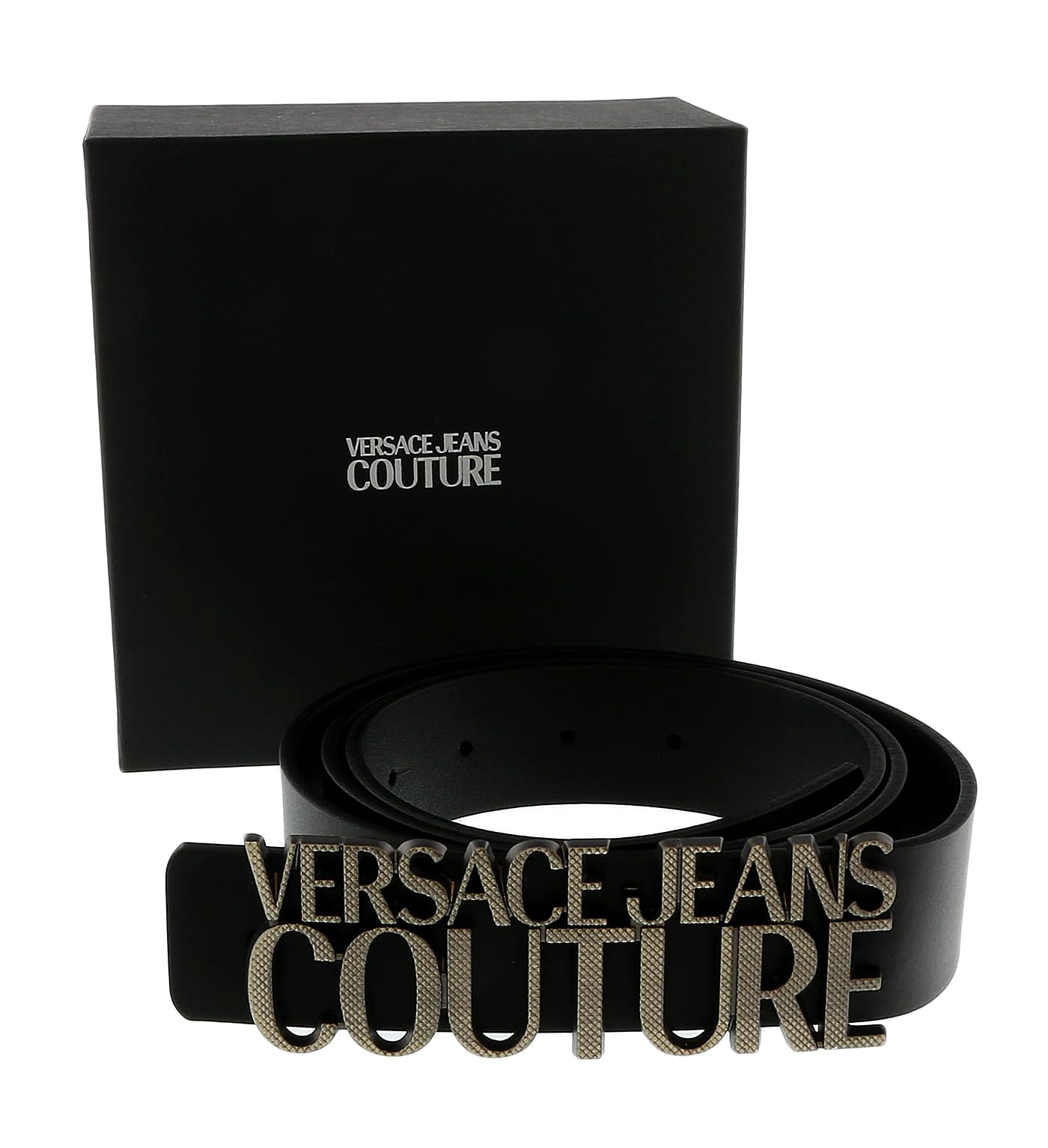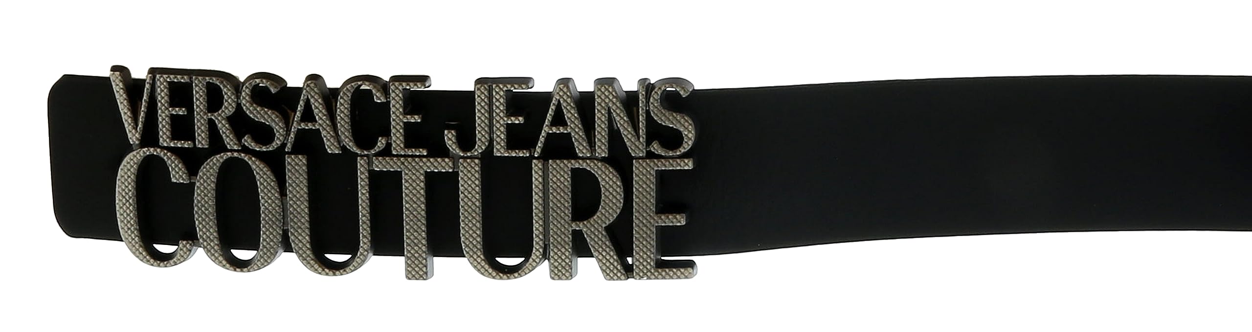 VERSACE JEANS COUTURE Black/Old Brushed Nickel Lettering Buckle Leather Belt-42 for Mens