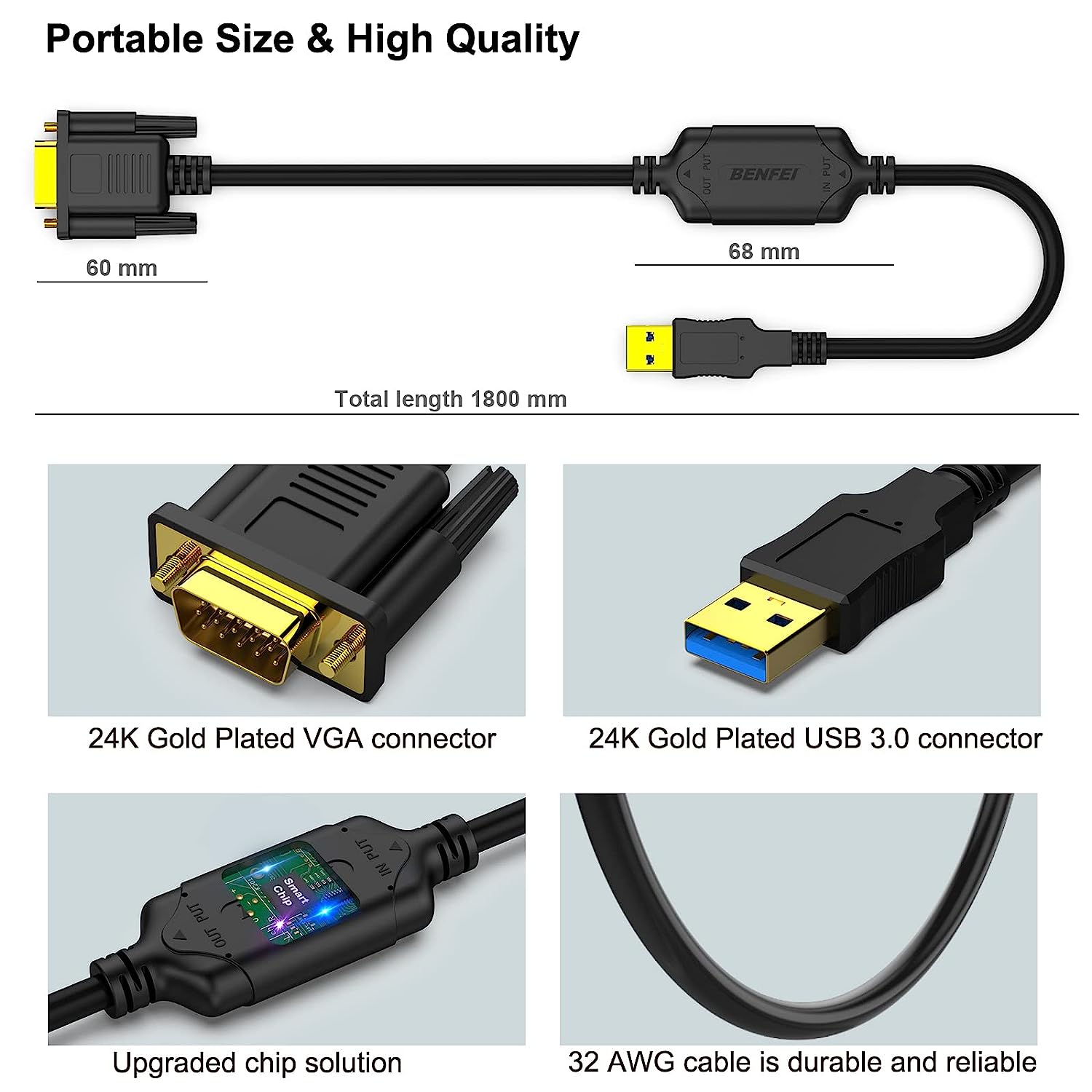 BENFEI USB 3.0 to VGA Cable, USB 3.0 to VGA Male to Male Cable - 6 Feet