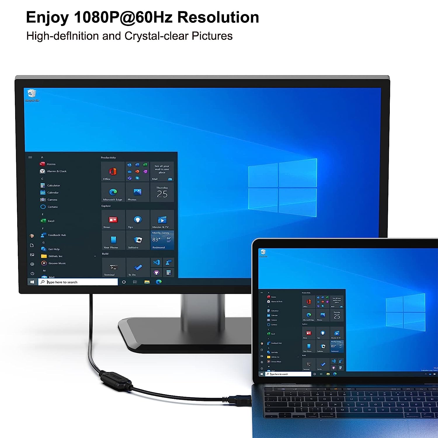 • SUPERIOR STABILITY - Built-in advanced IC chip converts USB 3.0 digital signal to VGA analog signal; Molded strain relief increases cable durability. Please pay attention: the MacBook with M1 chipset is not supported due to chipset issue, we highly recommend to use usb-c to vga solution.