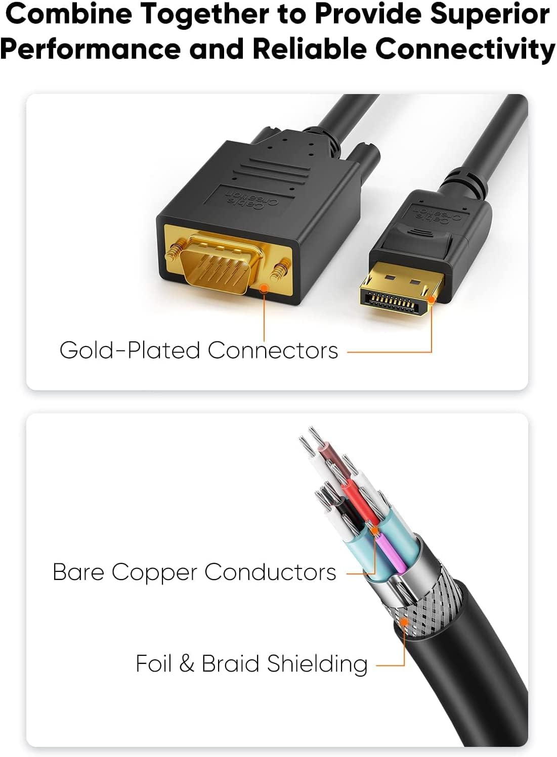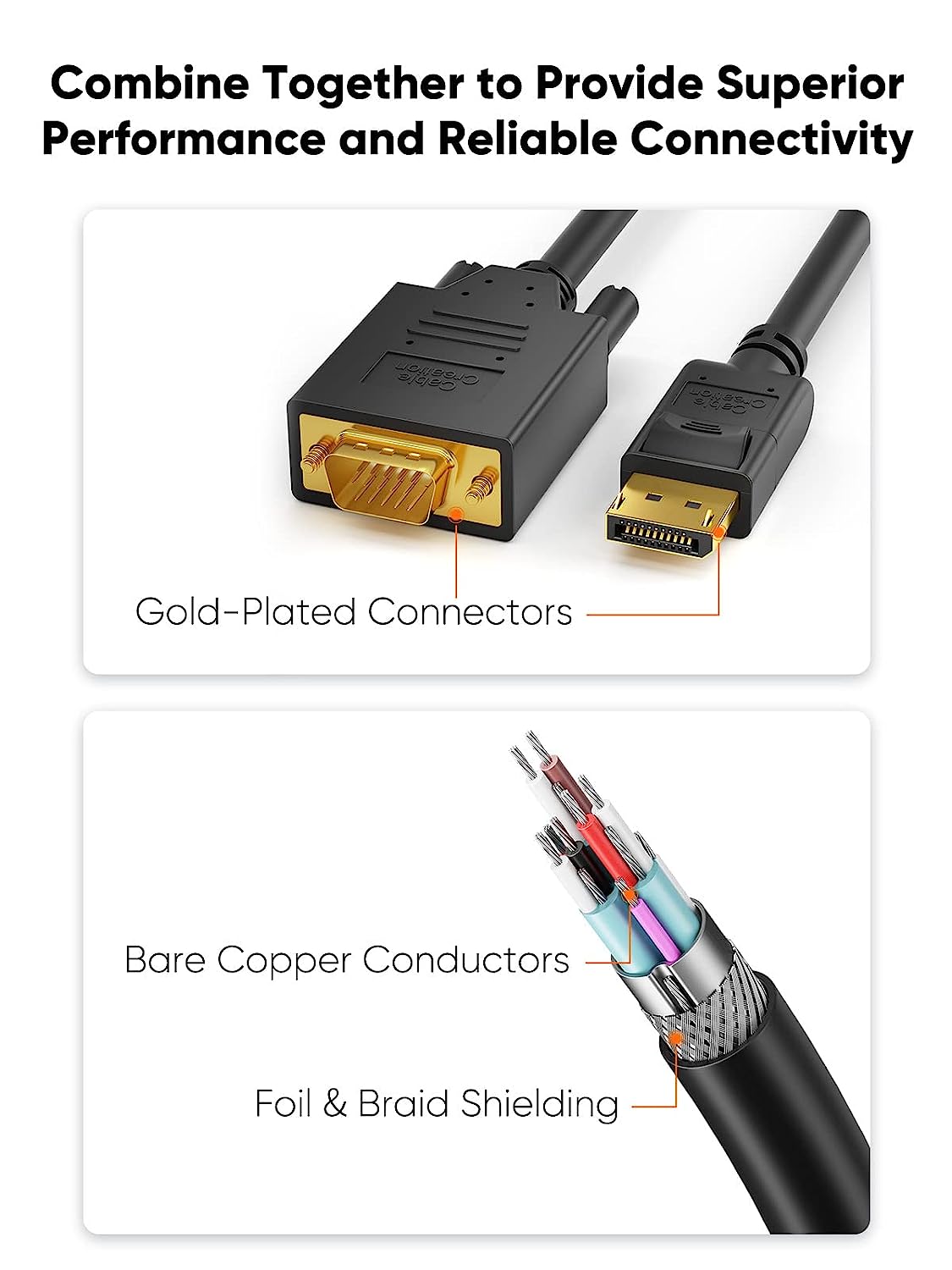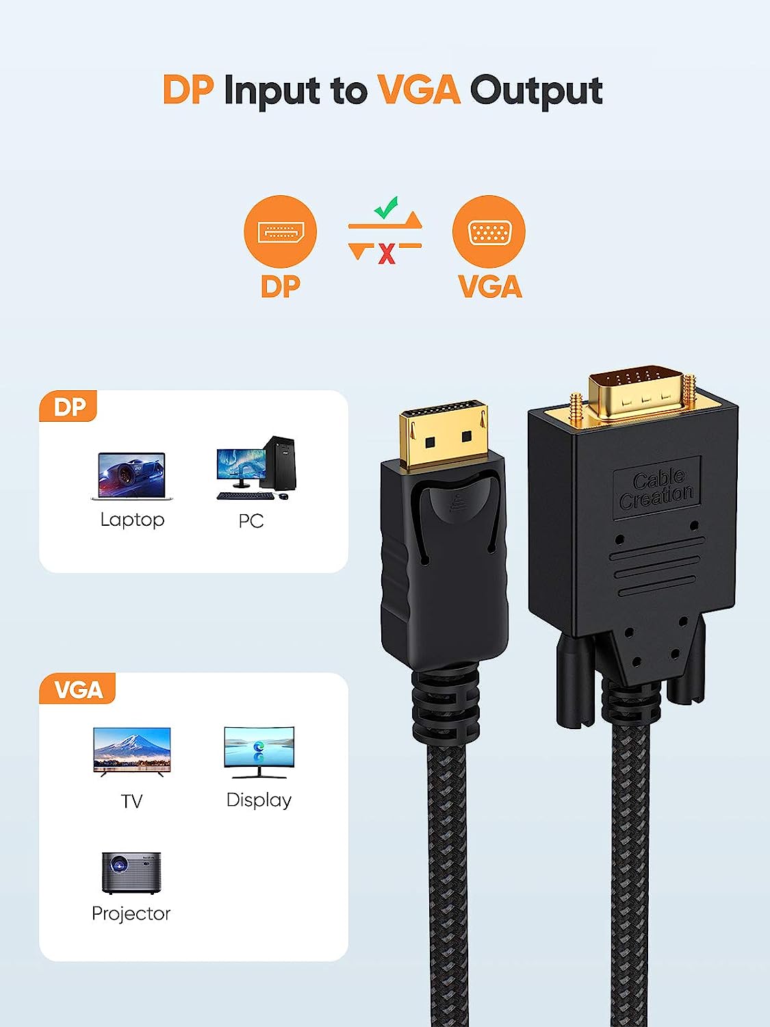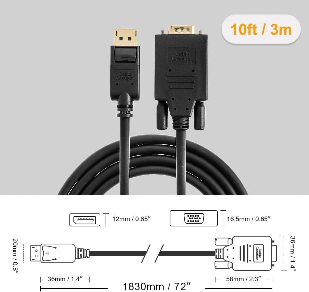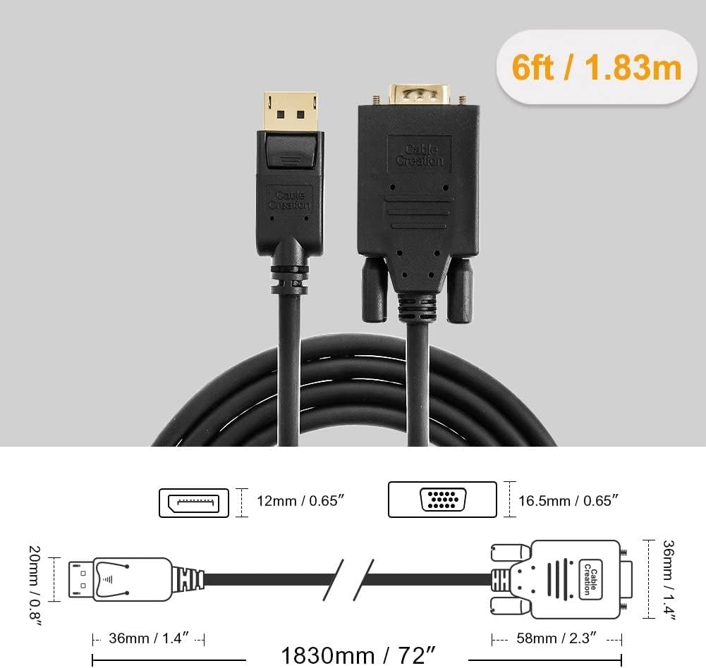 • 【What You Get】Displayport to VGA Cable x2, CableCreation 24-month product replacement warranty and lifetime friendly technical support. Any question, please feel free to contact us for help first.