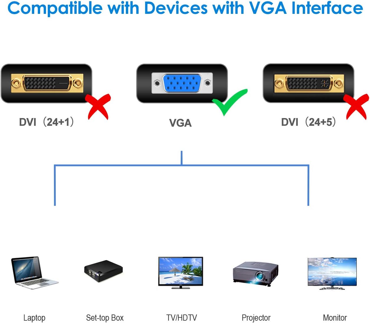 • Supports resolutions at 800x600 (SVGA), 1024x768 (XGA), 1600x1200 (UXGA), 1080p (Full HD), 1920x1200 (WUXGA), and up for high resolution LCD and LED monitors