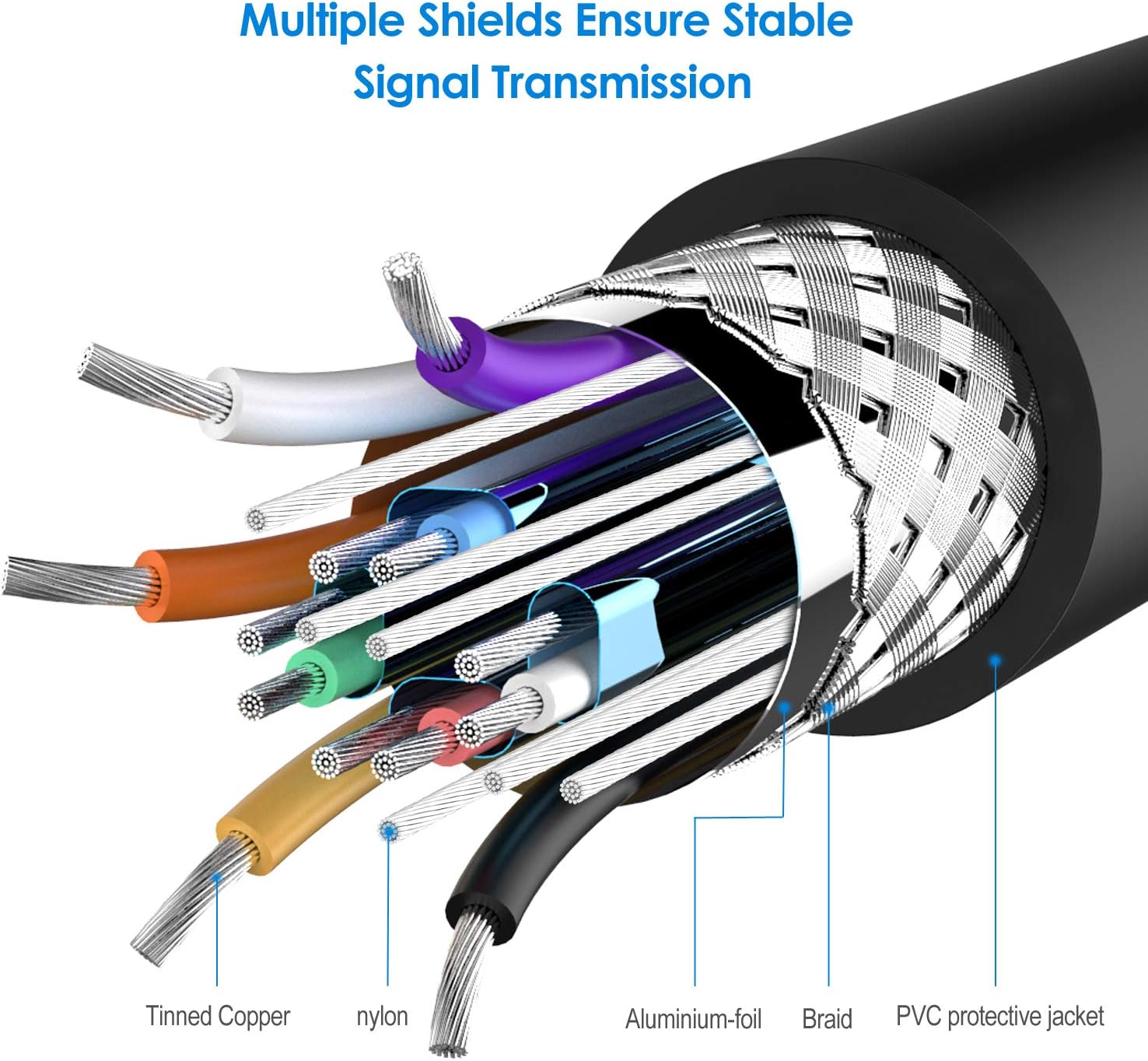 • 6 Feet. Screw-in VGA cable with 15-pin male input and output