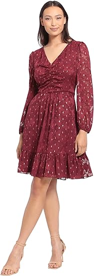 London Times Women's V-Neck Ruched Waist Tiered Skirt Dress
