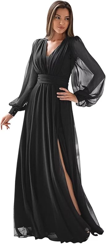 Long Sleeve Bridesmaid Dresses for Women Chiffon Formal Dress Long Prom Evening Dresses with Slit