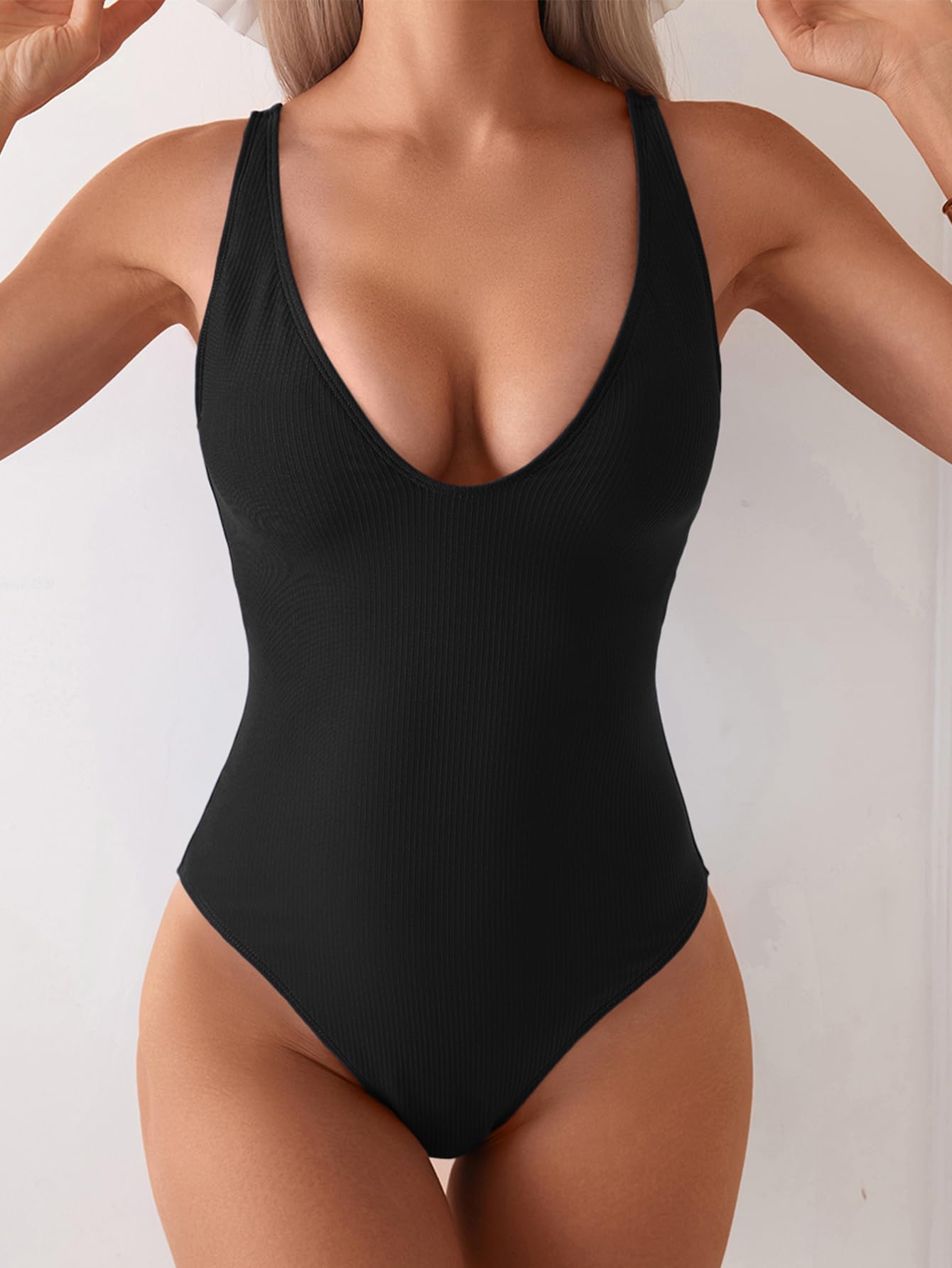• Features: Sexy plunge v neck solid color one-piece swimsuit, low back, removable push up padded bra for support and shape, make your chest look more upright.