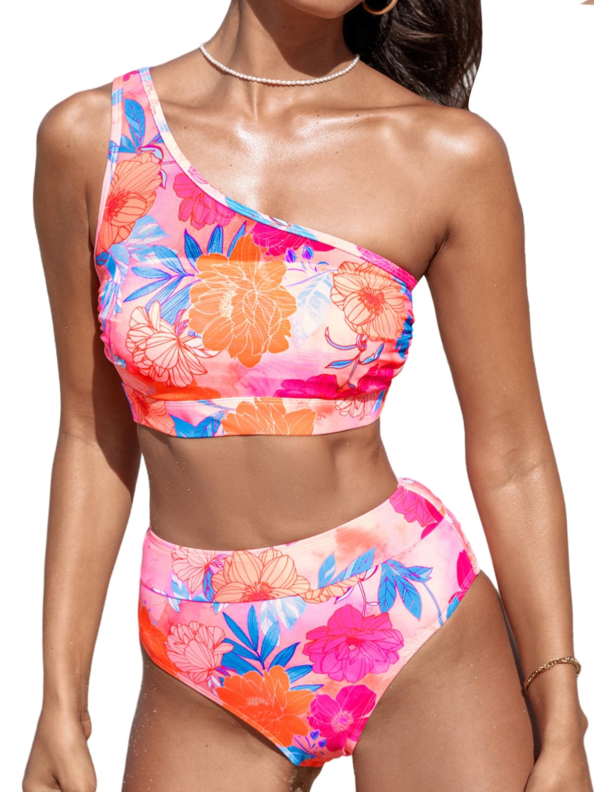 • Design: Make a bold statement with our one shoulder high waisted bikini sets. The charming two piece swimsuit with asymmetrical neck design and hidden underwire cups exudes confidence and style.About cup style: with underwire molded cups provide high support.