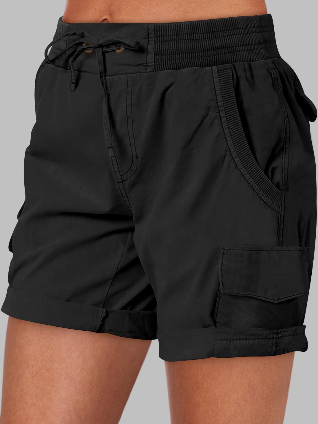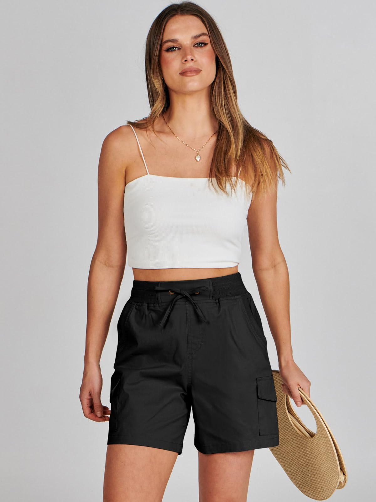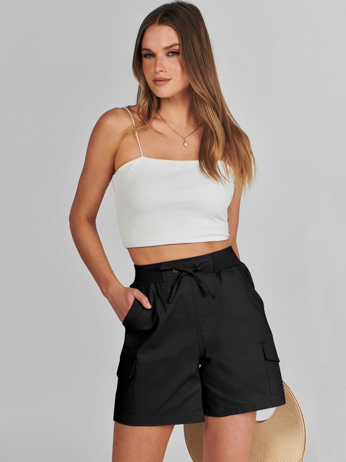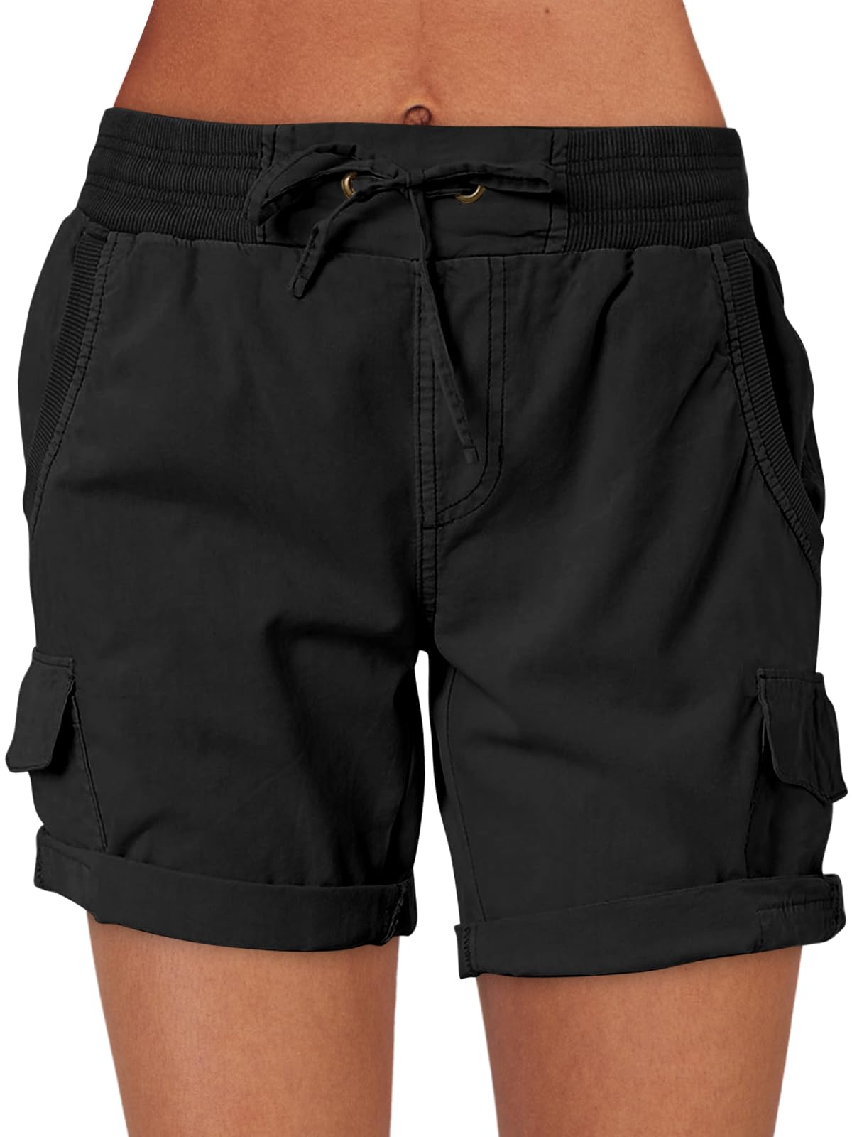 ANRABESS Womens Summer Shorts 2024 Dressy Casual Hiking Cargo Shorts Trendy Outdoor Outfits 6 Pockets Black 1350heise-XL