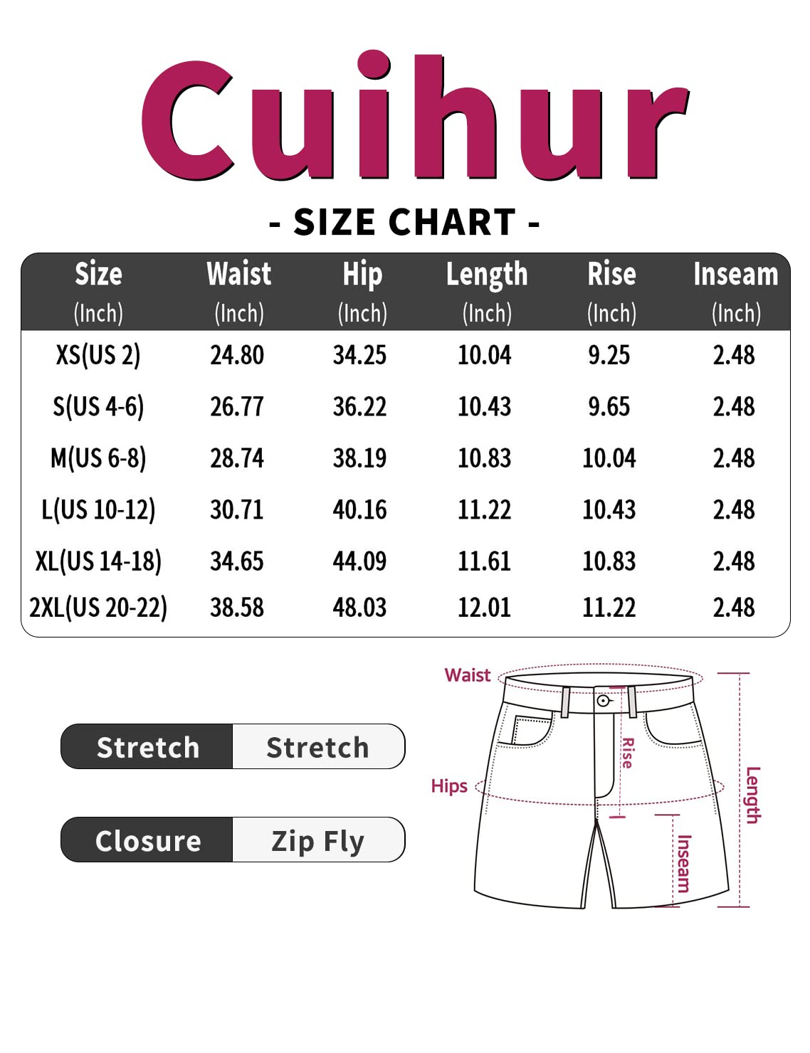Details: Cuihur Women's Casual Summer Hign Rise Ripped Jean Shorts Folded Hem Denim Shorts Distressed Denim Jean ShortsBreathable and soft fabric, mid rise jean shorts for summer.Denim shorts with folded hem, button fly,ripped destroyed short jeans,stretchy denim shortsModerate fit, classical design.Size: US14,US16,US18,US20,US22,US24,US26,US28.Please check Size Measurements before ordering to ensure a proper fit.Occasion: Daily, party, evening, casual, travel, home, street.Wash Instruction: Hand wash recommended; machine wash cold, do not bleach, hang or line dry.
