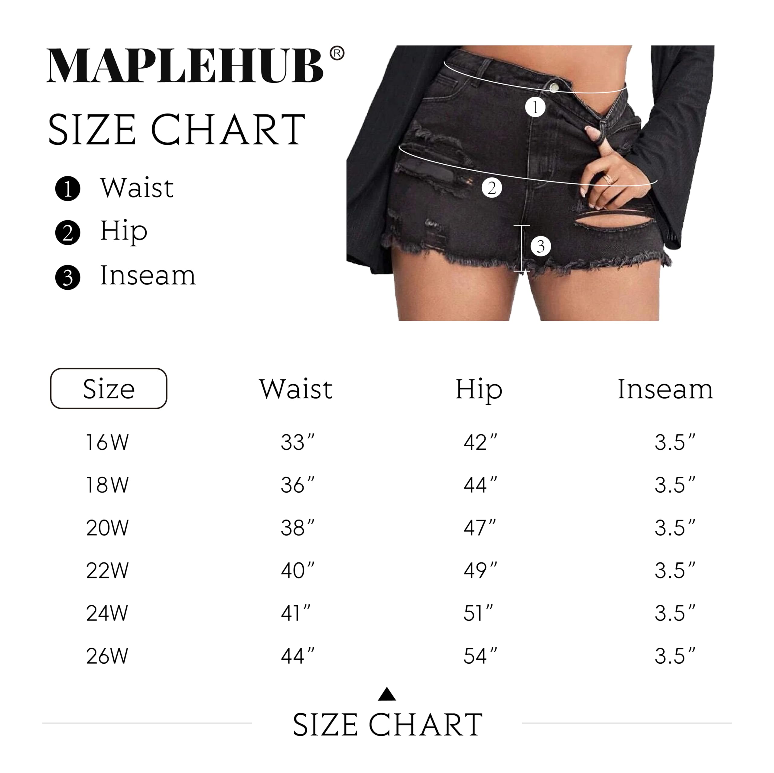MapleHub Plus Size Denim Shorts Women High Waisted Ripped Folded Hem Jean Shorts