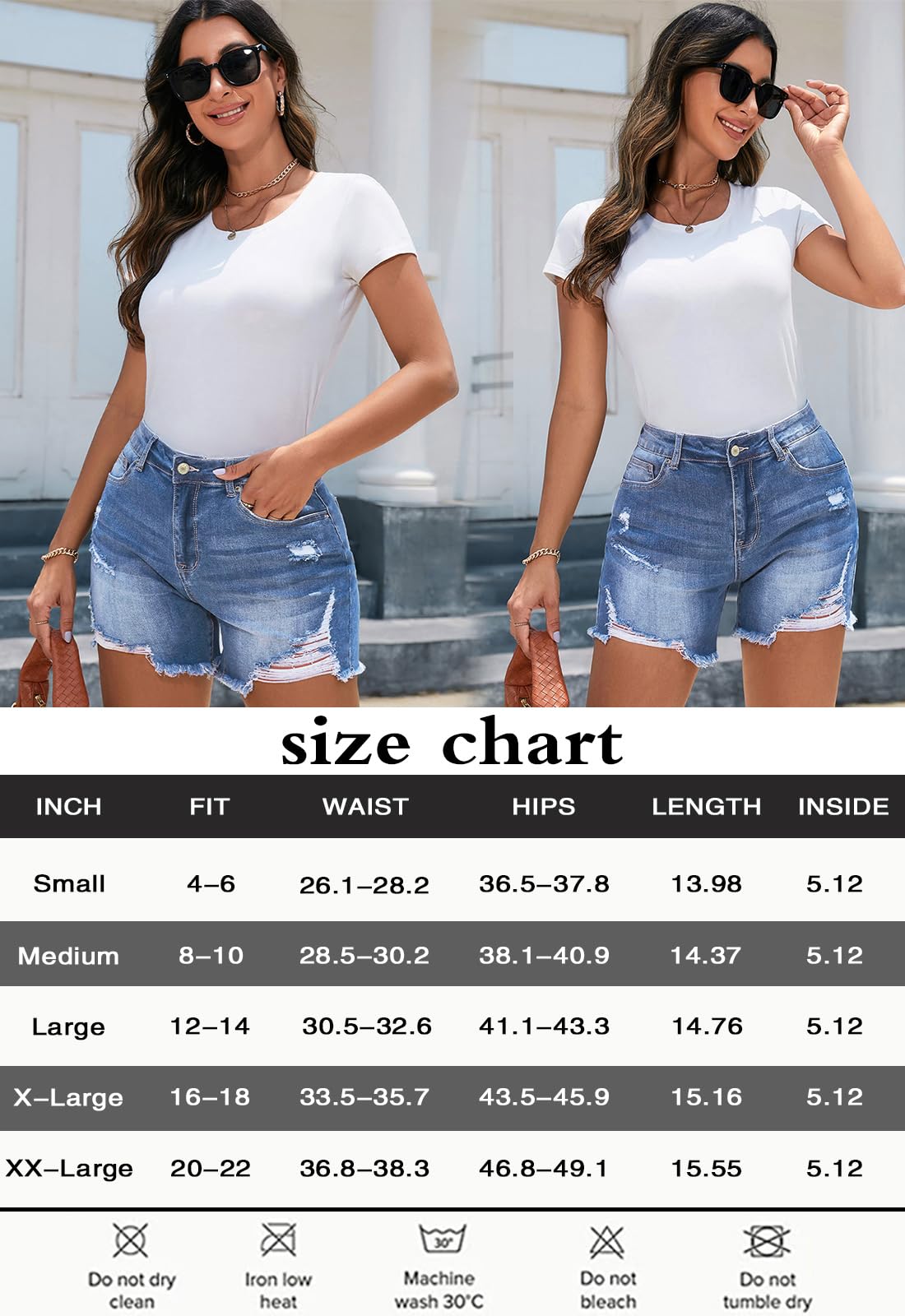 • Fabric:This ripped denim pants is made of 85% cotton + 10% polyester+ 5% elastane.Comes with denim blend fabric, this ripped denim shorts for women will make you feel perfect for skin-friendly and comfortable all day long.the denim fabric is durable and machine washable, making it a perfect way to wash.