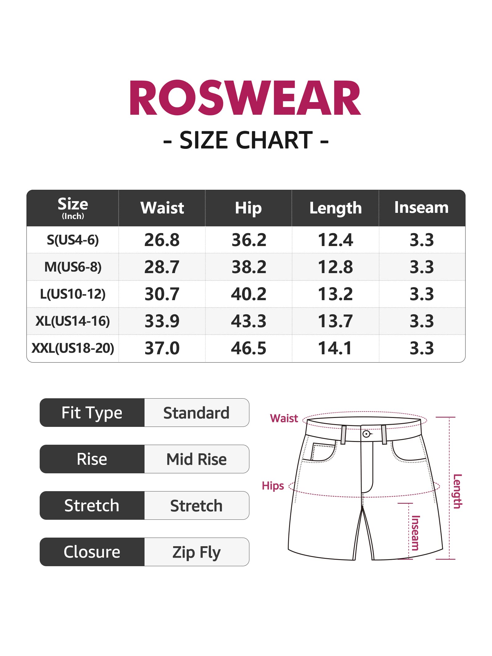 roswear Women's Ripped Mid Rise Stretchy Denim Jeans Shorts White X-Large