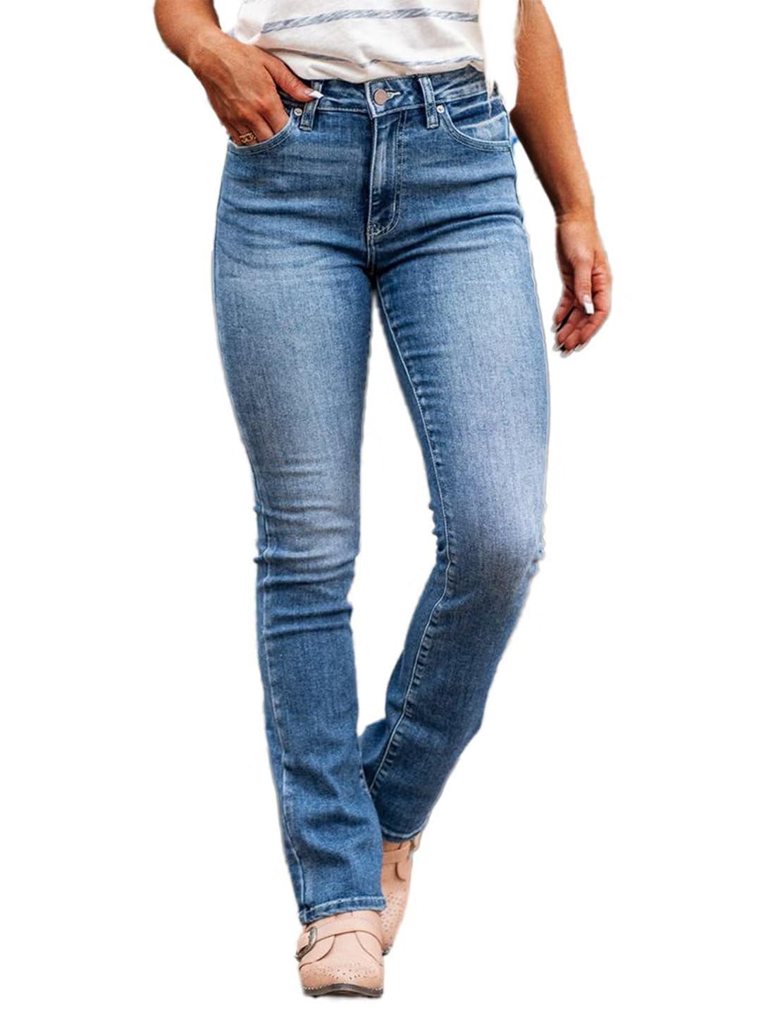 • Features: High waist design for a flattering fit. Button and zipper closure for a secure and comfortable wear. Convenient pockets for added functionality. Flare leg style adds a trendy touch. Made with high stretch fabric, these jeans enhance the wearer's appearance and showcase their unique personality. Perfect for both casual and dressier occasions, these versatile jeans are a must-have addition to any wardrobe.