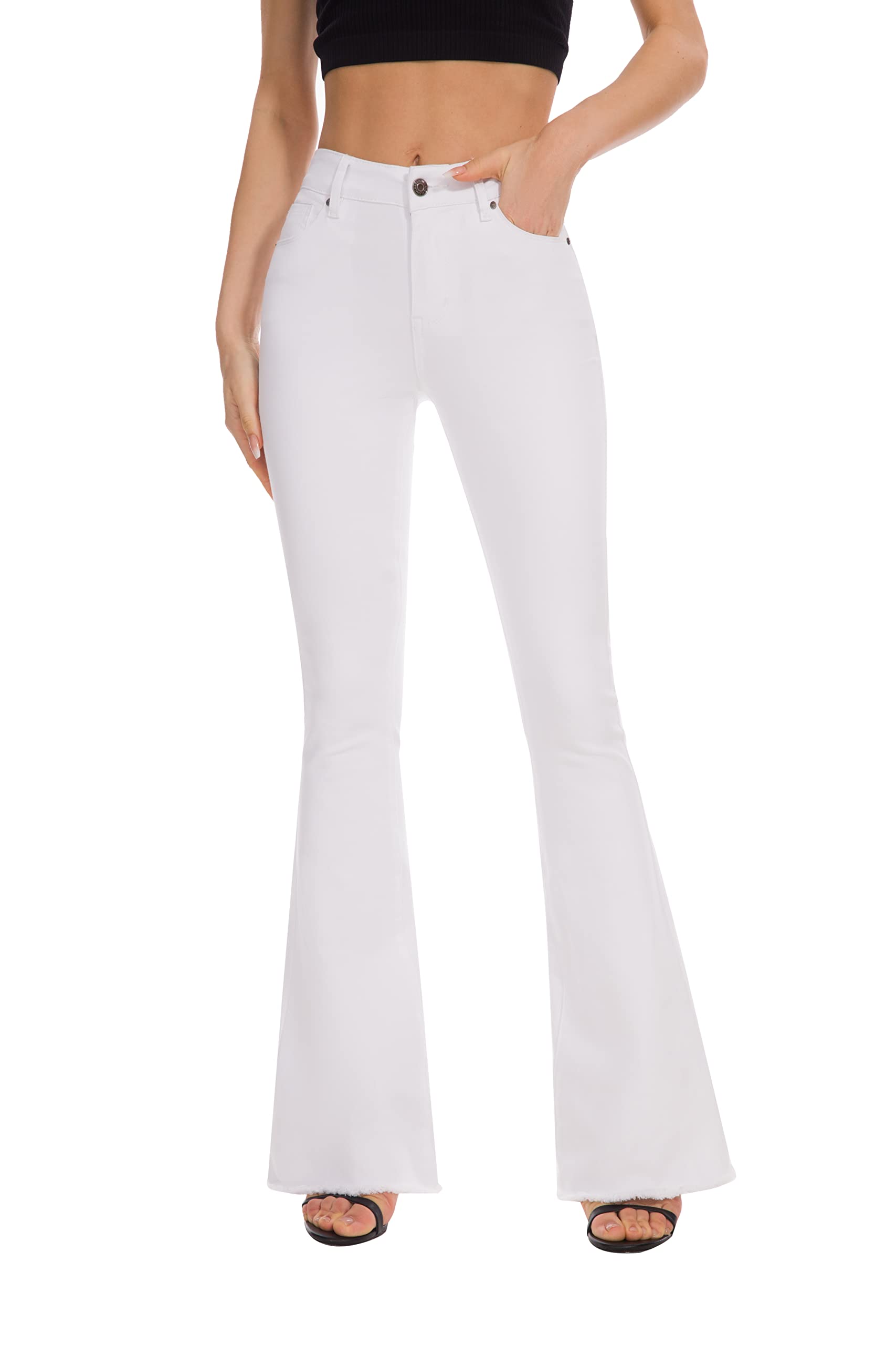 FLYING BANANA Women's Totally Shaping Curvy Strtchy Bootcut Flare Denin Jeans (White, 10)