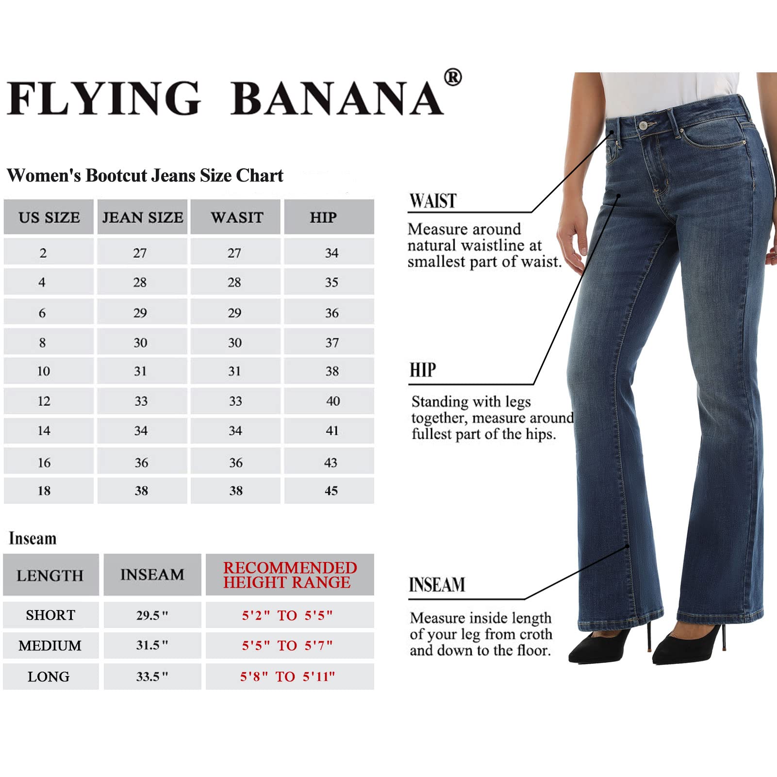 Details: · FLYING BANANA bootcut jeans feature classic five pocket styling. We used premium high cotton fabric, it is much more COMFORTABLE and BRETAHBLE than regular fabric, also it is real STRETCH, the fabric will not fade or lose shape after many washes or long time wearing.